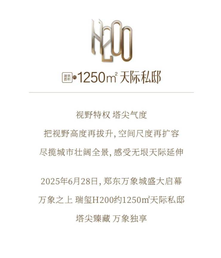 2025年6月28日,郑东万象城将非凡启幕,这座超级综合体将彻底兑现蓝图,为郑东再添一座"未来城市之心","万象之上"瑞玺,以建面约1250㎡顶奢天际私邸,再度点燃中原沸腾的目光。