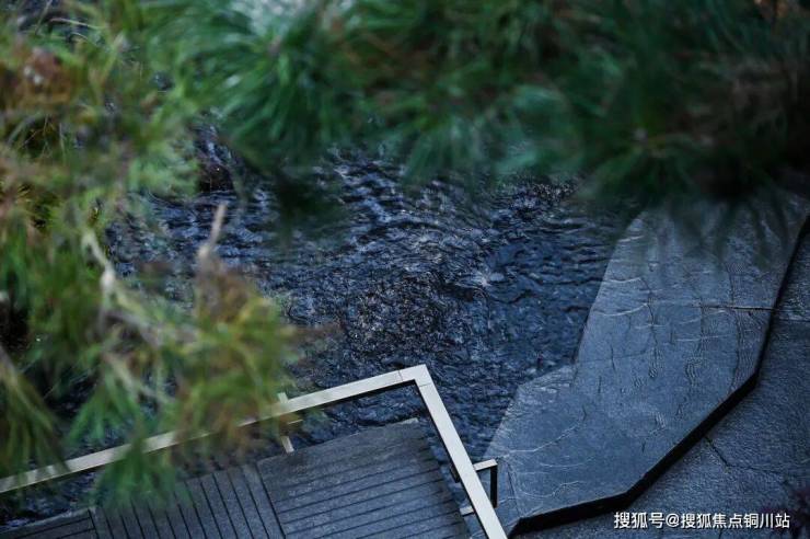于山水中寻觅自然而然,项目精选柏坡黄原石,落石成景,以苔藓复刻惠山地势,艺术化手法呼应惠山;同时营水筑园,大水宜分、小水宜聚,通过地形、桥梁、置石巧妙划分水面,不见其水口、不知其所踪,以溪流破石而下呈现自然壮景,山流回转成溪,还原空谷跌瀑、流水似琴音的美学意境。