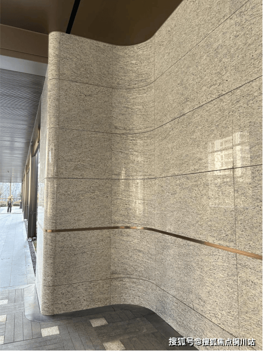 楼梯转角,单元入口/电梯厅的吊顶,架空层、风雨连廊的立柱,屋檐下方的金属面板......所有能见度都采用流畅柔和的线条打造