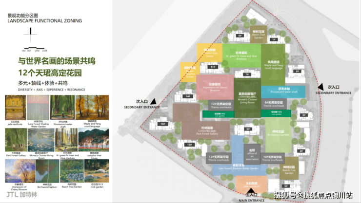 同时,也正是这一“外部资源内化”的设计策略,将河景脉络延伸至社区中央,打造出15条景观轴线和30处对景庭院,并结合12组定制化主题花园与多重景观轴线,构建出无界沉浸、酒店度假的场景体系。设计刻意模糊内外界限,使园区成为自然向城市温柔延伸的媒介。