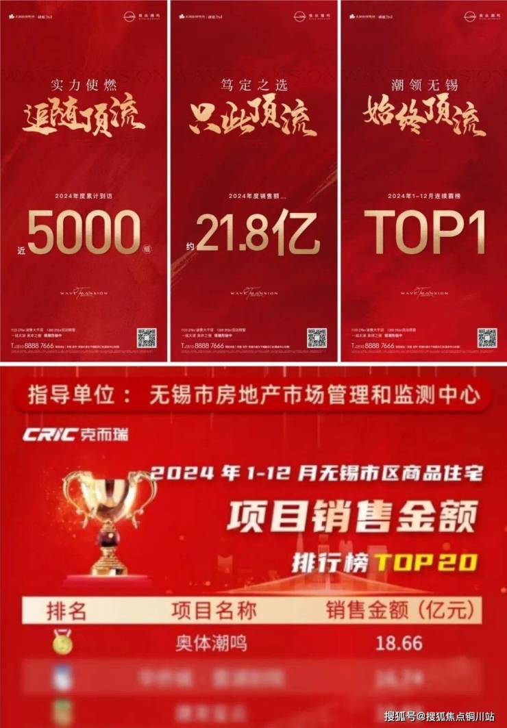 2024年,奥体潮鸣以18.66亿的傲人业绩,稳居无锡市区商品住宅项目销售金额TOP1。