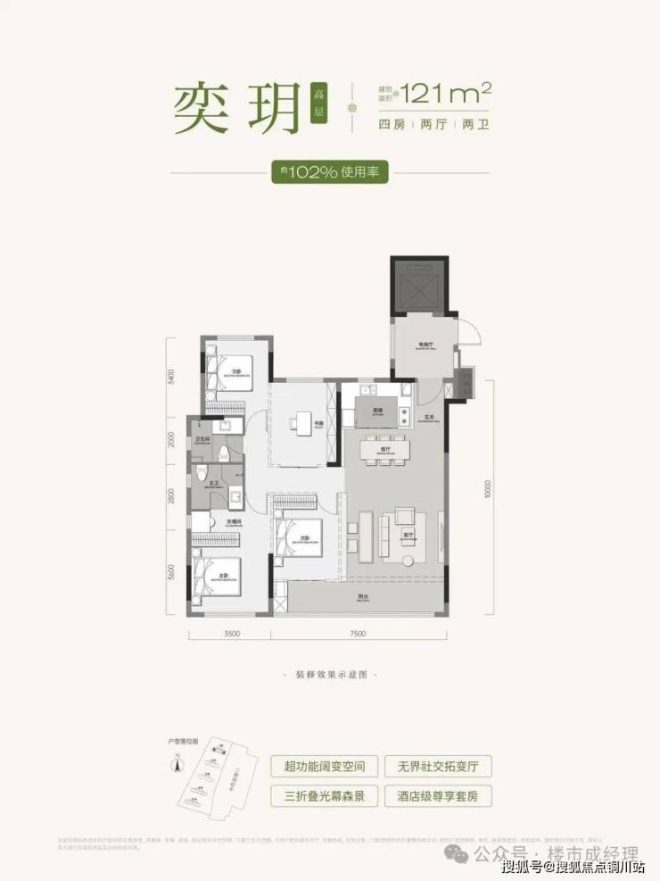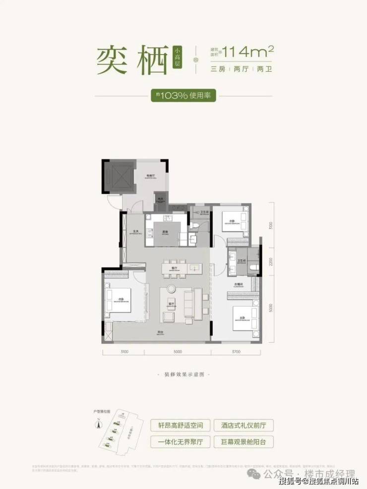 ✅低公摊,得房率预计在100%-115%。