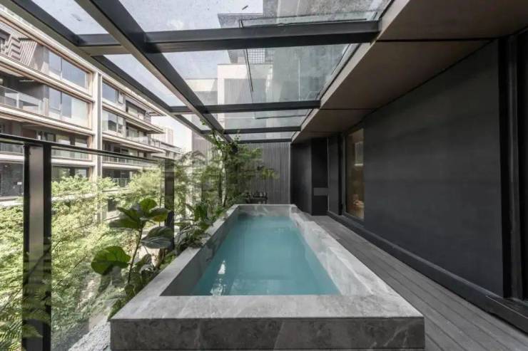 Highlight Two: "Super Large Flat". The flat product is a large-width product with one elevator serving one household. The south-facing width reaches 20.2 meters. On the north side of the product, the sunlight is utilized to create a scene terrace connected to the kitchen and other public areas, as well as a swimming pool terrace adjacent to the master bedroom space, maximizing the north-south width of the product.