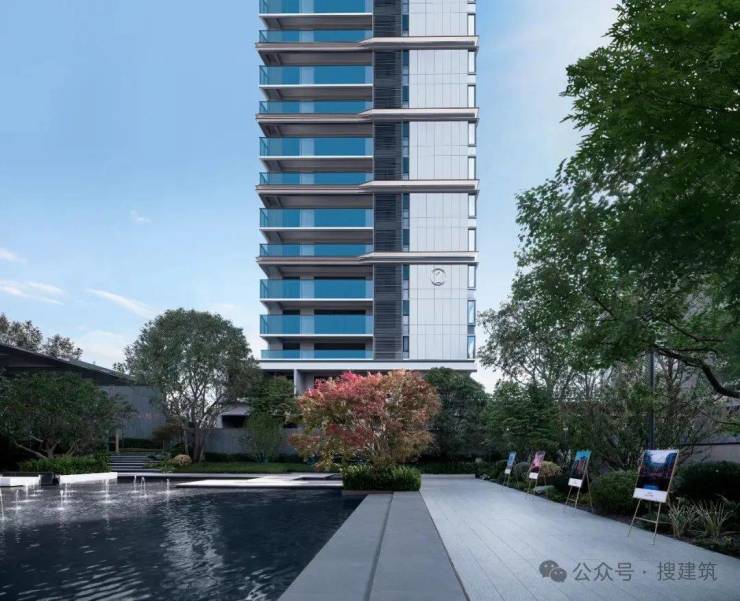 比如,杭州方远金地椿实·江映云邸的“棱镜立面“,立面设计上窗边打造约2CM的精致框线窄边,组成双眼皮窗框,于“金丝镜框”内嵌45度双层斜切铝板工艺,打磨而成,整个建筑的立面如同一件流畅的艺术品,也创造良好的景观和采光视野。