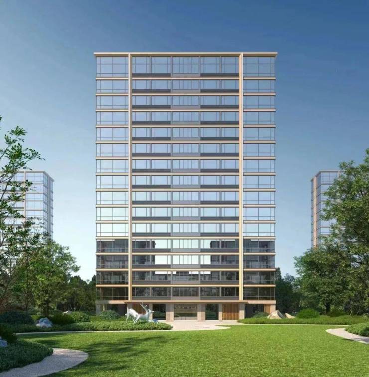 再比如,杭州湖翠云来府,采用大面玻璃辅以金色铝板线条,形成了一个个金色的“折角画框”,整个建筑看起来毫无重量感,实则骨相纤秀挺拔,强调的是容量,而非体积,仿佛是“美”的载体。
