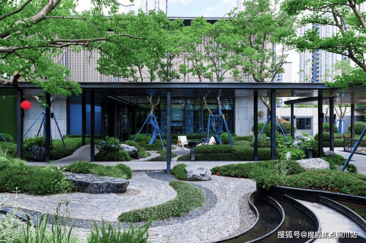 内部绿化景团更是丰富,四季更迭的花卉、树种、树冠都经过精心搭配;每栋楼栋前还都有一个“宝藏”花园,色彩明亮饱和,在有限的土地上丰富绿意,真正做到庭前皆为景。