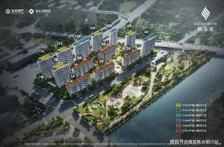 既有横向景观铺陈,也有中轴对称礼序——我个人愿称之为映秦淮的“黄金十字分割点”。这么做的目的,只能有一个:那就是最大程度做到户户观景,户均视野最大化,让业主尽情俯瞰秦淮新河的大美无极。