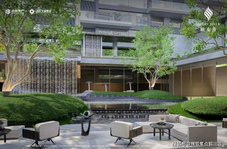 下图是近千方的下沉式山水庭院,自然无界交互,与会所室内空间形成洄游动线。中魂西技,“共鸣”金陵千年文化内核。