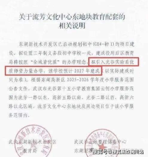 项目紧邻的初中(GX4-初1)近期也传来了大消息。据悉,东湖高新区已启动该初中建设,拟引入光谷实验系优质师资,预计2027年建成。