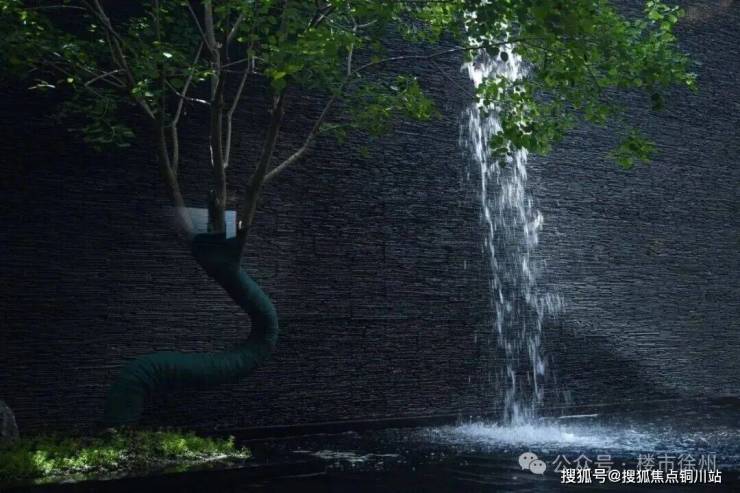 穿过风雨连廊,在庭院式归家大堂内聆听约5米高叠瀑叮咚,让我卸去了一身疲惫。