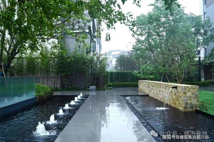 山门两侧外立面采用缙云仙都景区整块高湖石原石,遇雨呈现天然水墨纹理,系徐州唯一高湖石立面社区。