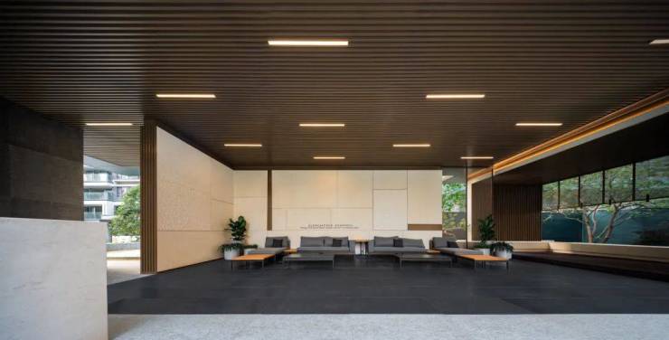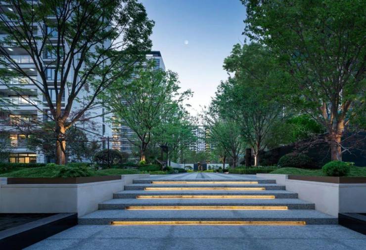 不单树形美观,更与景观环境巧妙融合,孤植、成对皆有标准,成片乌桕林与层级台阶组合、8棵榉树列阵铺呈礼仪迎宾空间、北美娜塔栎林斑斓馥郁、遒劲黑松令人赏心悦目......园林绿植精中选精,一步一景构建诗意般生活情境,让每次归家都成为一次旅行。