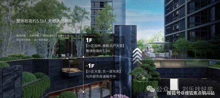 【整体抬高设计】项目整体抬高约5.5米,形成“无感屏障”,有效隔绝噪音、杂尘污染,同时保障业主私密性与安全性,更能有效防止雨水倒灌。