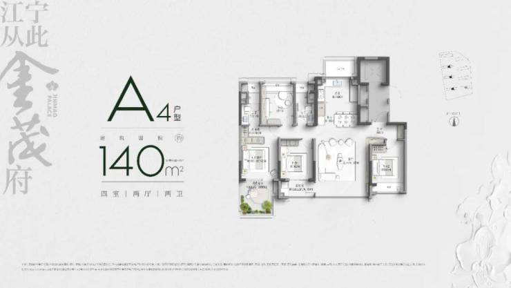 先说下基本信息,江宁金茂府容积率仅约1.8,打造8栋楼,包括5栋15-17层小高层、3栋9-11层洋房,户型建面约140、180、220㎡户型,140㎡起步,是江宁四代宅中起步面积最大的小区,非常纯粹。