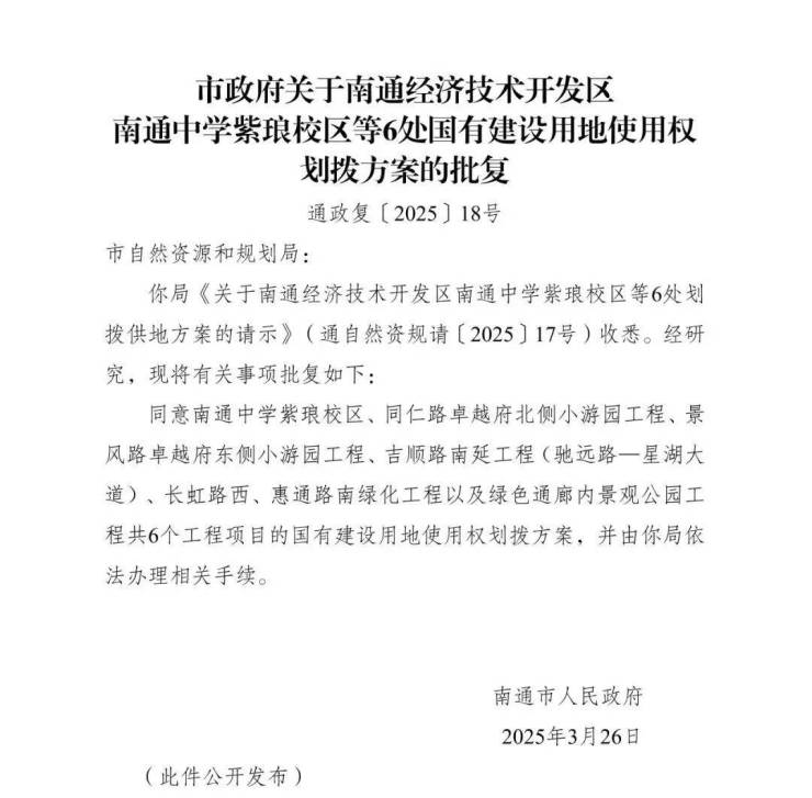 █ 教育方面将新添一所16轨48班高中校区,日前,南通中学紫琅校区用地已划拨,距离正式开工越来越近了!