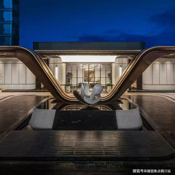 高层建筑的立面表达:建筑外立面选用Low-E中空玻璃+阳极氧化铝板,以银灰渐变色呼应江面晨昏光影;整个设计以“层叠江韵”为设计灵感,所有面江阳角位置均采用曲面弧形玻璃幕墙,通过参数化的设计模拟江水流动的柔美曲线,进一步拓展室内看江界面,实现更大角度的观江视野。