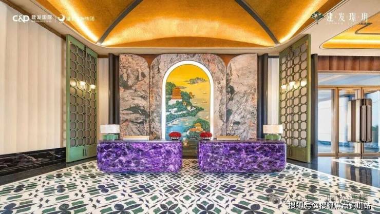 酒店式环岛落客区已不少见,不过,与顶奢酒店同款的奢华穹顶,以及高端定制的金镶玉雕塑,则属于妥妥的豪宅符号了。