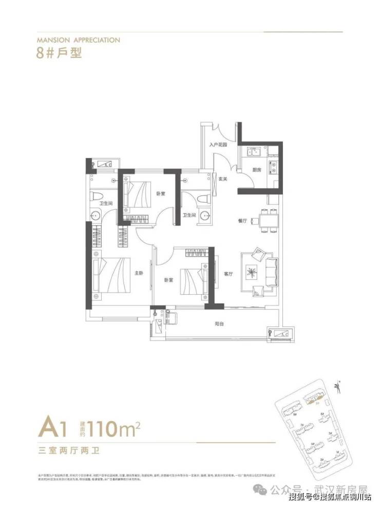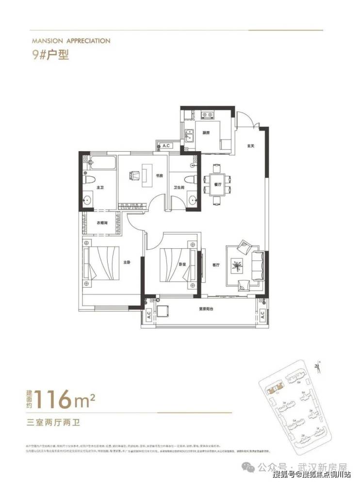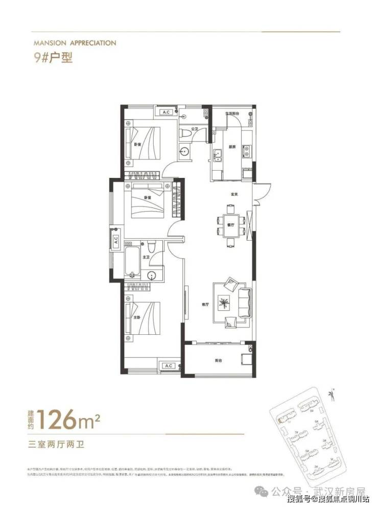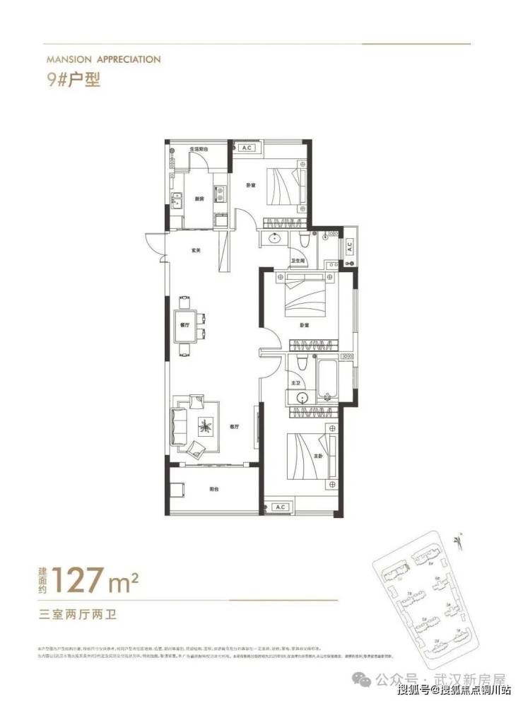 9#总高33层,两个单元,两梯四户,中间户116㎡,拼接户126㎡,纯边户127㎡,得房率85%;