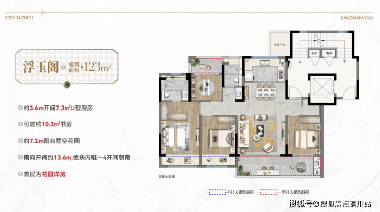 建面约123㎡的稀缺洋房,四开间朝南,首层附赠庭院,性价比极高。