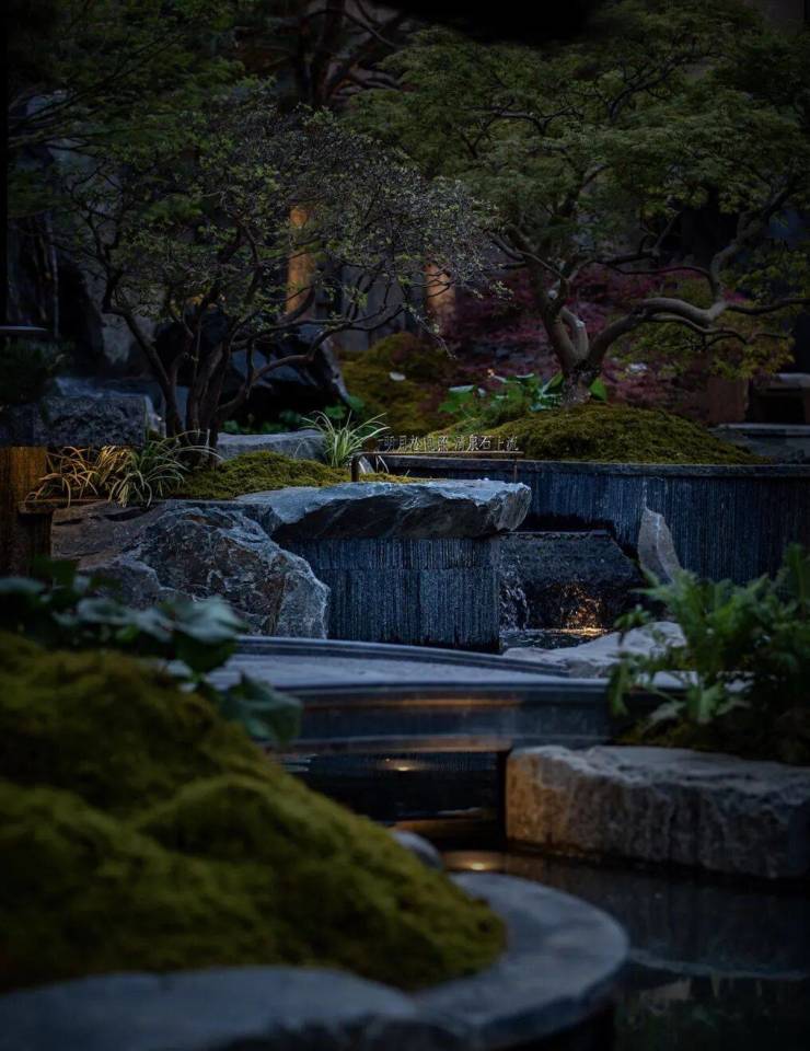 漫步其中,空间被折叠切割,前中后景层层递进,耳边是流水潺潺,眼前是光影交织、虚实相生。