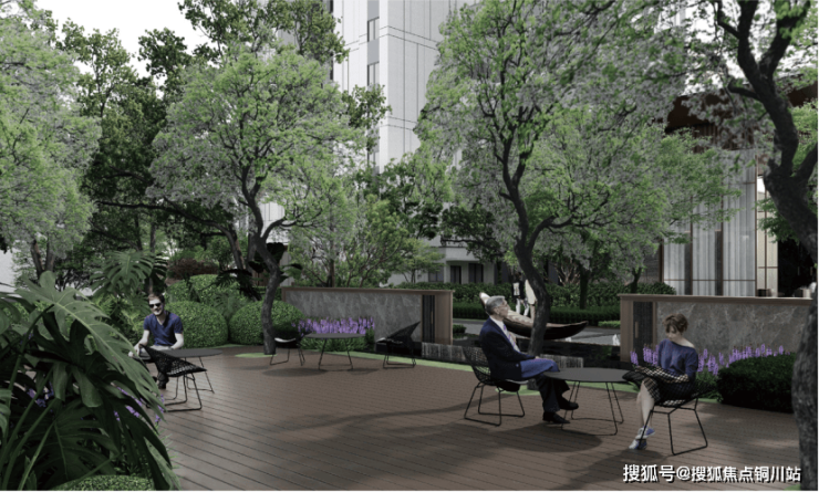 小区园林中打造一方约100㎡林下庭院,设置轻奢质感木平台卡座,为邻里社交、休憩营造森氧静谧空间,面向下沉大草坪,所见皆绿,林下对谈意趣横生;约200㎡半围合活动绿地,是家庭露营、聚会、遛狗、玩耍等的绝佳场地,自然户外生活至臻。