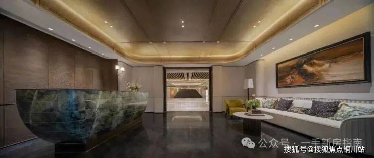 当迈入超4米挑高的地上入户大堂,豁然舒展的归家体验瞬间拉满。整个空间的“视觉主角”,非正中央的珊瑚玉石岩板背景墙莫属:温润质感中透着厚重底蕴,让人一眼惊艳、过目难忘。地面的精致拼花中融入了项目独家定制的华之纹图案,细微处彰显匠心和品质。