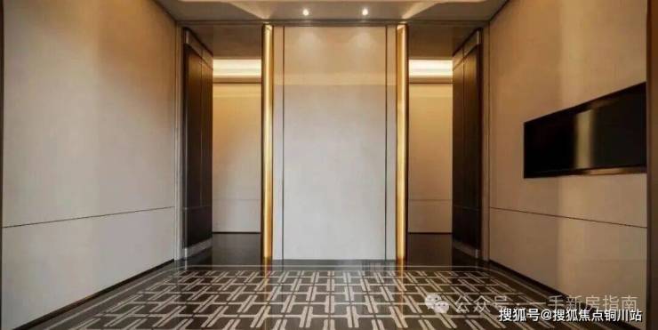 地下入户大堂墙面采用奢石岩板,再加上星级酒店式电动全落地玻璃门+无感智控,极大提升归家的幸福感。