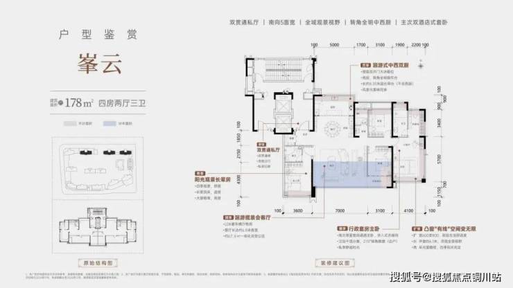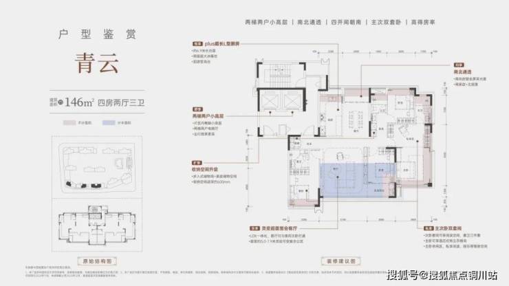 项目主推的是建面约146-178㎡户型,得房率达到95%-109%。