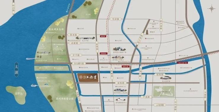 区位与配套:位于吴江 - 东太湖度假区,苏州湾芯地段,周边交通十分便利,3 公里范围内有地铁站和多条公交线。教育资源丰富,有众多幼儿园、小学和中学。周边还有多家超市、购物中心以及医院,生态环境优越,3 公里范围内有多个公园24。