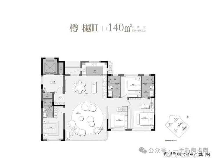 建面约119平的边套则做成标准四房+大横厅,足以秒杀周边建面约140平传统户型。