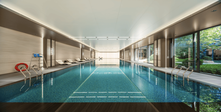 此外,约3000平业主会所,拥有三层立体空间,四季恒温泳池、观景健身房、篮球场、乒乓球羽毛球场位于负一层,而且这些空间可以与下沉庭院对视和互通。