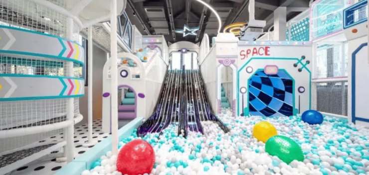 在海信君玺小区里,一栋以太空为载体打造的星际主题乐园格外显眼,将游乐场搬进社区里,在青岛这还是第一家。