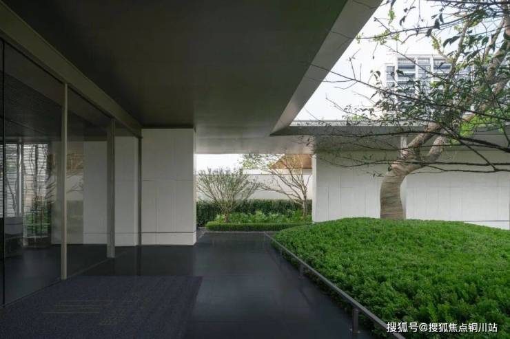 入则宁静,出则繁华。结合“古树场力”形成的酒店式环形落客庭院,兼顾人行与车行功能。对称的前场序列,完整而统一主入口界面,提高了归家系统的档次与格调,构成了领域感极强的社区封面。