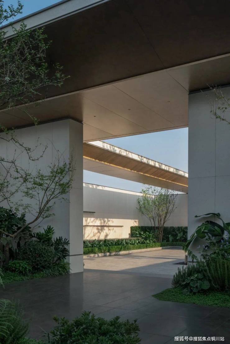拾系布局手法的一致性在于第一进围合空间,通过“水”、“树”、“影”、“屋”四种视觉概念来营造空间记忆点。通过“象牙白”、“松石绿”、“星空灰”、“暗铜色”四种主色调体现着精致雅奢,释放着自然静谧。以不同地域特征和文化视角来展现气质差异,立于“原型”和“记忆”之上,承载地方文化诉求的同时,以实现建筑创作更多艺术化的可能性。