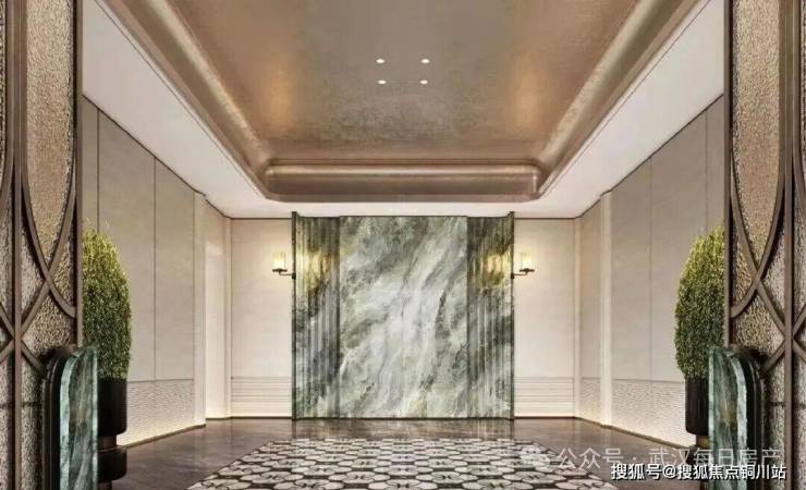 全精装酒店式大堂,以雕琢艺术品级的匠心,铺陈尊贵而有序的归家仪式。甄选蓝翡翠奢石景墙,地面水刀拼花工艺,勾勒奢华与雅致的归家心境。