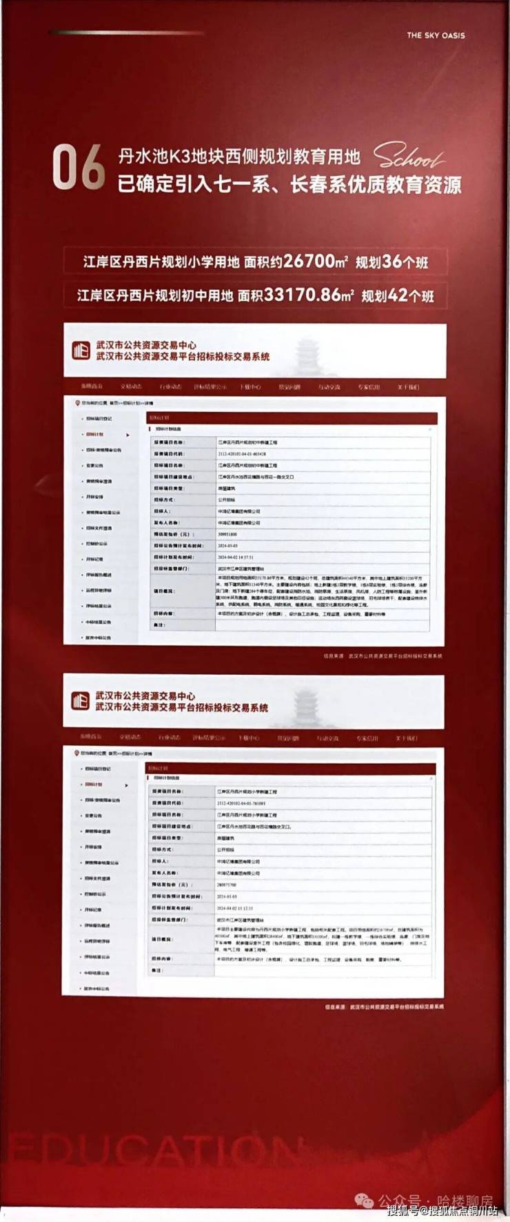 【教育】:项目西侧教育用地预计于2024年开工建设,2026年投入使用,具体建设时间以江岸区政府投资项目计划安排为准。学校建成后将引入七一系、长春系优质教育资源。该项目适龄儿童将根据市区教育局招生政策按照“人户合一”政策对口入学。