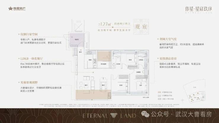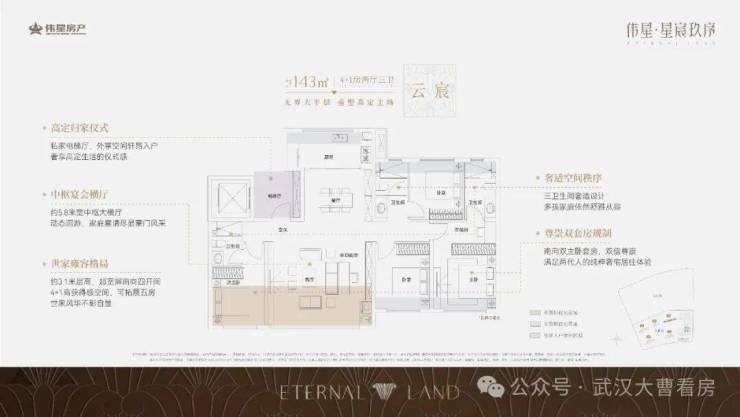 ✨伟星·星宸玖序是伟星扎根武汉的战略巨著,集合伟星房产32年高端豪宅造诣,以全面超越的设计,全维「豪宅式」改善,为武汉系统性定制、独创的顶序作品。