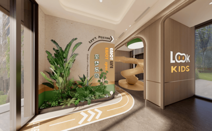 焕新城市界面,打造约1000㎡开放式花园商业街区,设计融入艺术展陈、休憩座椅、林荫步道等景观元素,模糊社区边界,使内部园林与外部城市烟火无缝链接,营造“出则繁华,入则静谧”的生活意境。