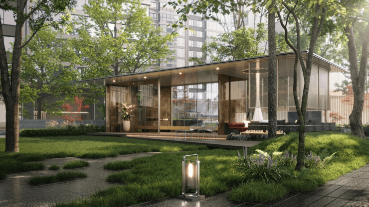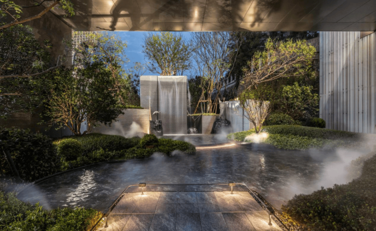 园林景观,师法自然,致敬土地,致力打造一个大隐于市,城市森系奢居之地,打造台地式园林,以“折叠山水”演绎当代城中山水自然庭园。将场地转换形成具有立体维度的空间,折射场地历史沉淀以及未来价值机遇。
