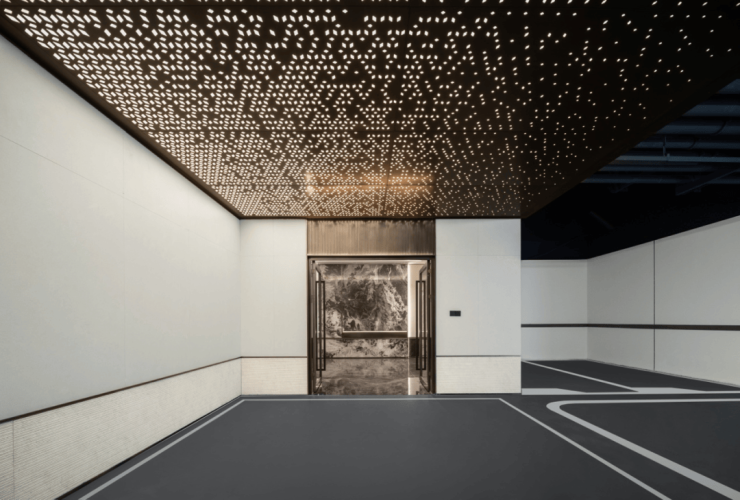 致力于营造出充满“豪宅获得感”的归家氛围,在地下光厅(地库入户大堂)的设计中,采用“劳斯莱斯星空顶”。既使整体充满温暖而明亮的灯光氛围,又为空间增添了别样的视觉体验。大气铺呈、开阔奢适的地下空间,业主在光影交织中,感受更高的生活格调。