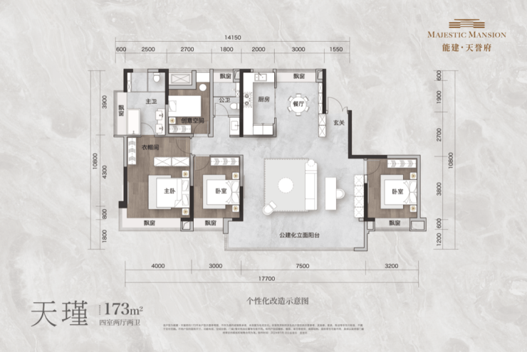 能建天誉府120-143-173㎡户型,以“超配”标准打磨,创造性尺度宽幕,颠覆空间想象,超高得房率,生活一步到位。