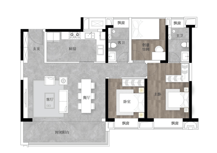 【主卧套房】酒店式主卧套房设计,270°拐角飘窗,专属尊崇