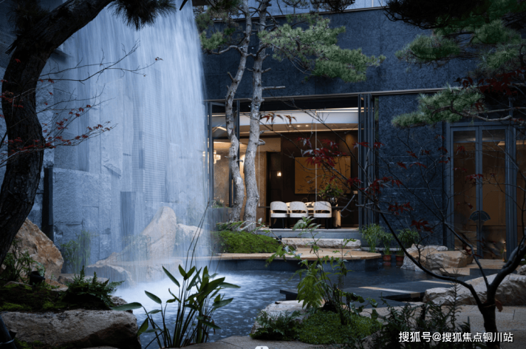 同时,传承了寄畅园“大水宜分,小水宜聚”的理水智慧,通过叠瀑、溪涧与静池的动静结合,再现“八音涧”空谷流泉的琴音意境。下沉庭院中的松涛飞瀑,水流破石跌落成景,雾森缭绕间恍若仙境。