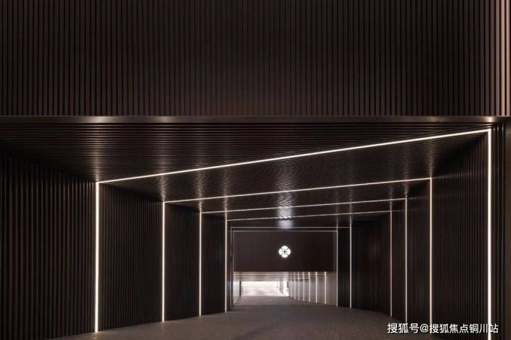 在地库入口的设计上,项目选用马蹄石铺装,配合两侧线性灯带引导,形成了具有序列感的归家动线。