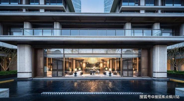 车马院以上海半岛酒店为灵感,设计上使用海鸥丽晶酒店同款接待门,彰显尊贵的大家门厅气质;打造社区归家玄关,下挂式星空顶、艺术雕塑、迎宾叠水范思哲黑背景墙交相辉映。