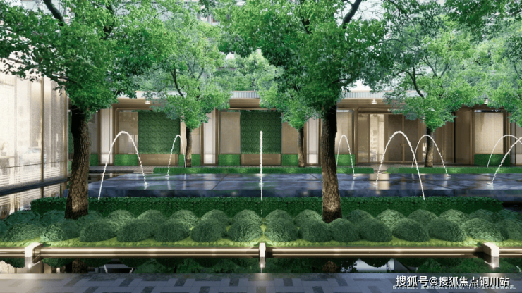 在景观设计由朗道设计操刀,以层层展开的藏宝盒为理念,擘画度假感十足的酒店式生活情境。借鉴托斯卡纳花园别墅夹景做法,融汇园林框景艺术,打造秘境花园;阵列式跳泉、几何绿篱等,营造富有仪式感的礼序水院;古典花坛、灵动涌泉,自然与艺术交融,勾勒出度假感浮岛花园。