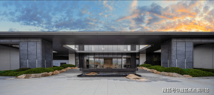 在外立面设计上,区别于传统新中式的直角和现代流畅的曲线线条,而在新中式立面风格的基础上融入具有现代风格的小弧线元素,介于“方圆之间”的创新设计,为立面造型增加了一丝生动活泼的气息,同时也削弱了传统中式直角的锋利感,使整个建筑造型稳重的同时更具有亲和力。