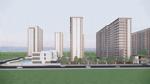在规划布局上,项目采用板点结合、错位排布的空间结构;西侧点式布局减少沿街户数,最大程度上规避高速对小区的影响,中间板式布局延展横向空间,最大程度上围合大尺度中央景观庭院;规划整体错落有致,张弛有度的空间序列也提供了更好的观河观景视野。