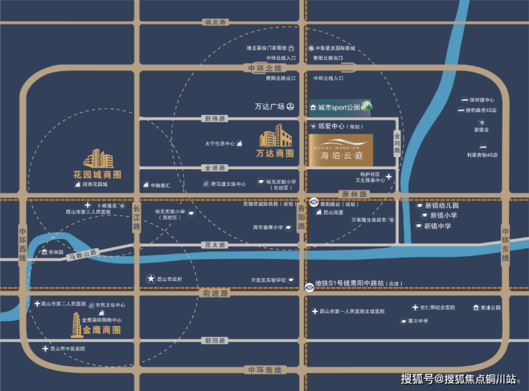 海玥云庭位于萧林路和横泾路交汇处,由江苏钜康集团打造,区位配套优势明显。对望娄江,纵享万达及花园城两大商圈,繁华触手可及,执首主城,于城市喧嚣中寻一静谧处,是追求“大隐于市”的理想生活主场。“两横两纵一环”立体交通路网,快速通达全城繁华都会生活。