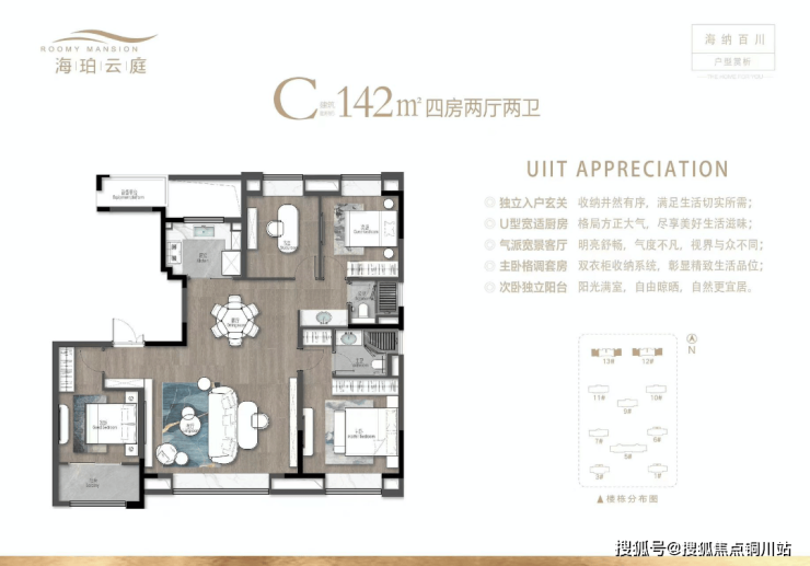 项目总规划户数418户,全系宽境平层,拥有超高得房率。